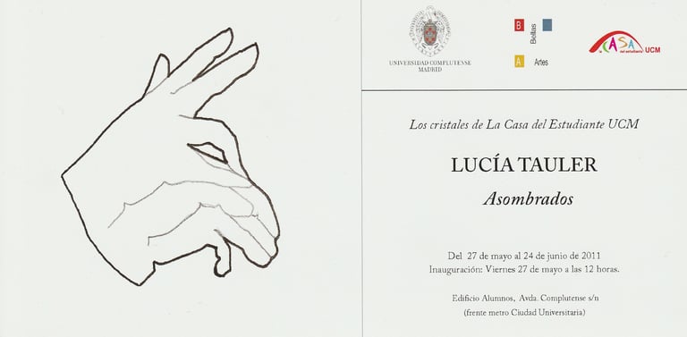 Proyecto creado en 2011 a partir del espacio expositivo, en este caso “Los cristales de la Casa del Estudiante UCM”. La obra aprovecha todo el potencial de las cristaleras del edificio y genera una interacción con el mismo. Una obra “viva” en la que la sombra repta por las estancias y pretende recordarnos que las proyecciones suelen ser a menudo mas asombrosas que la realidad. Se conforman entonces realidades paralelas, interconectadas, simultaneas y dependientes una de la otra.